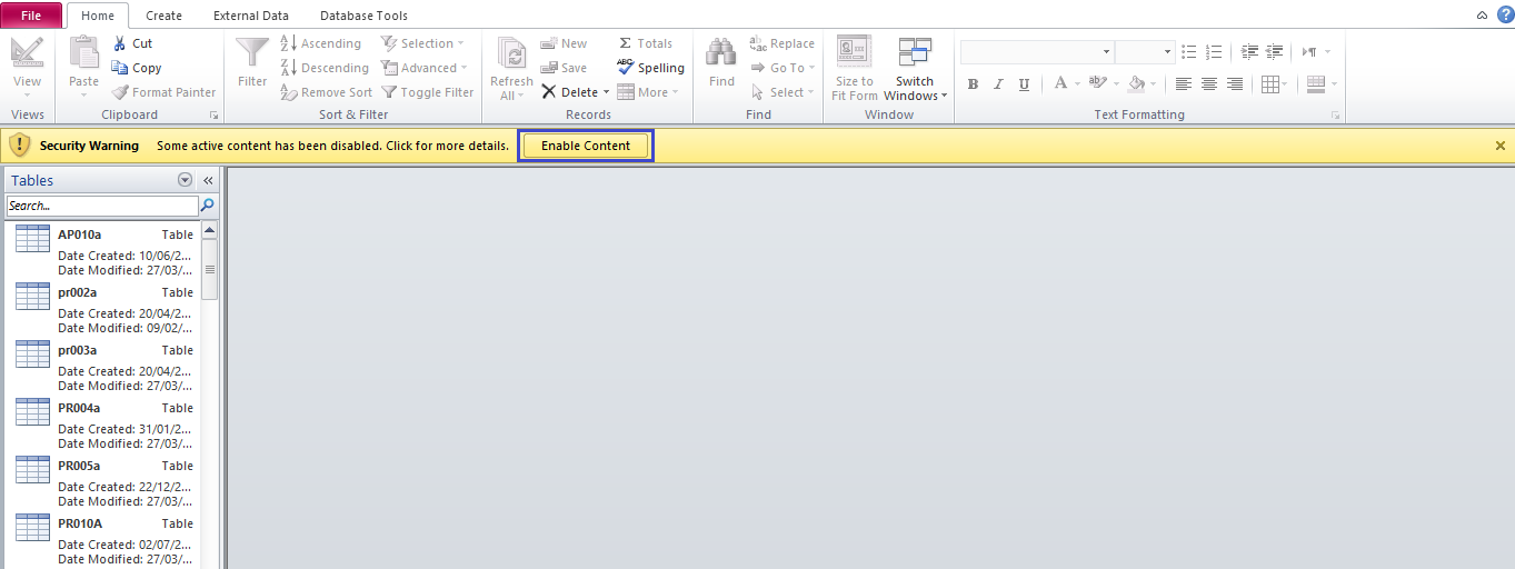 Klik Enable Content supaya bisa edit databasenya