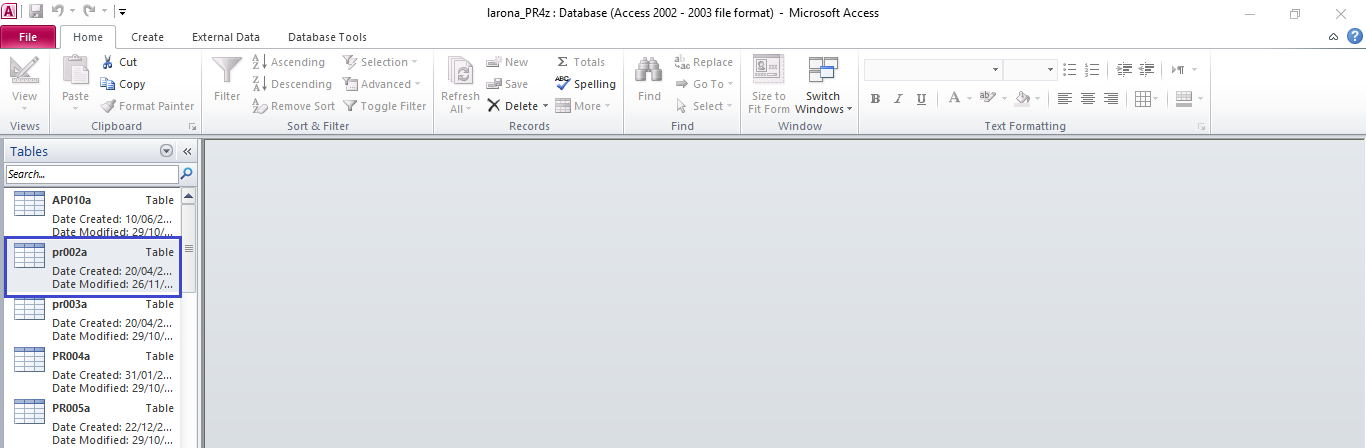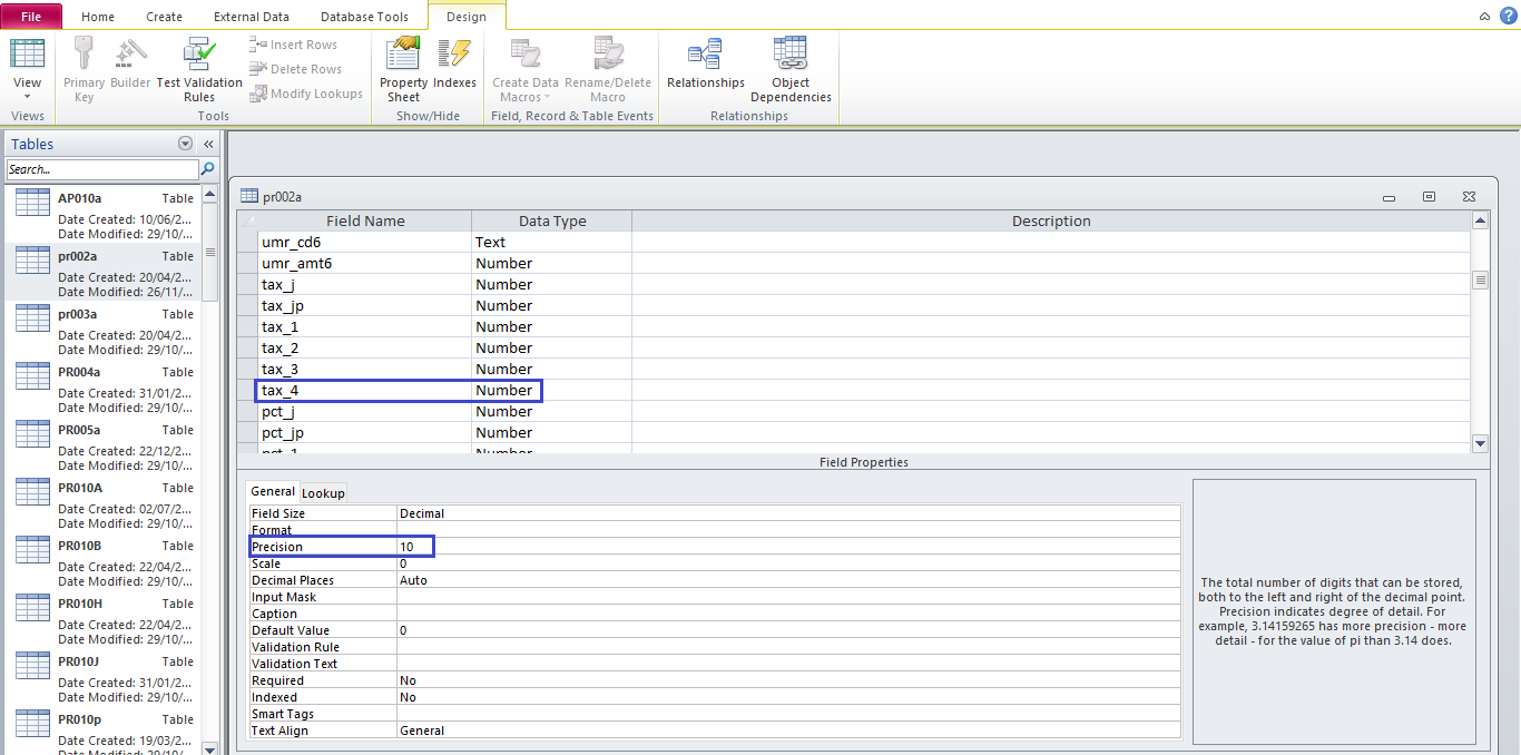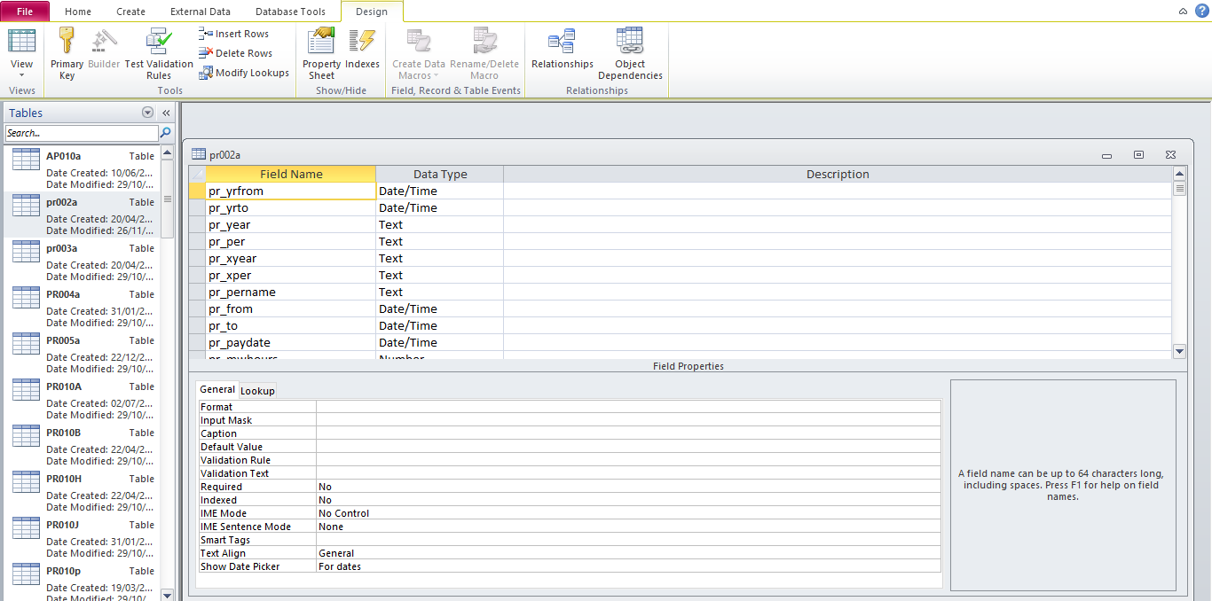 4. Klik kanan pada table pr002a, pilih Design View,